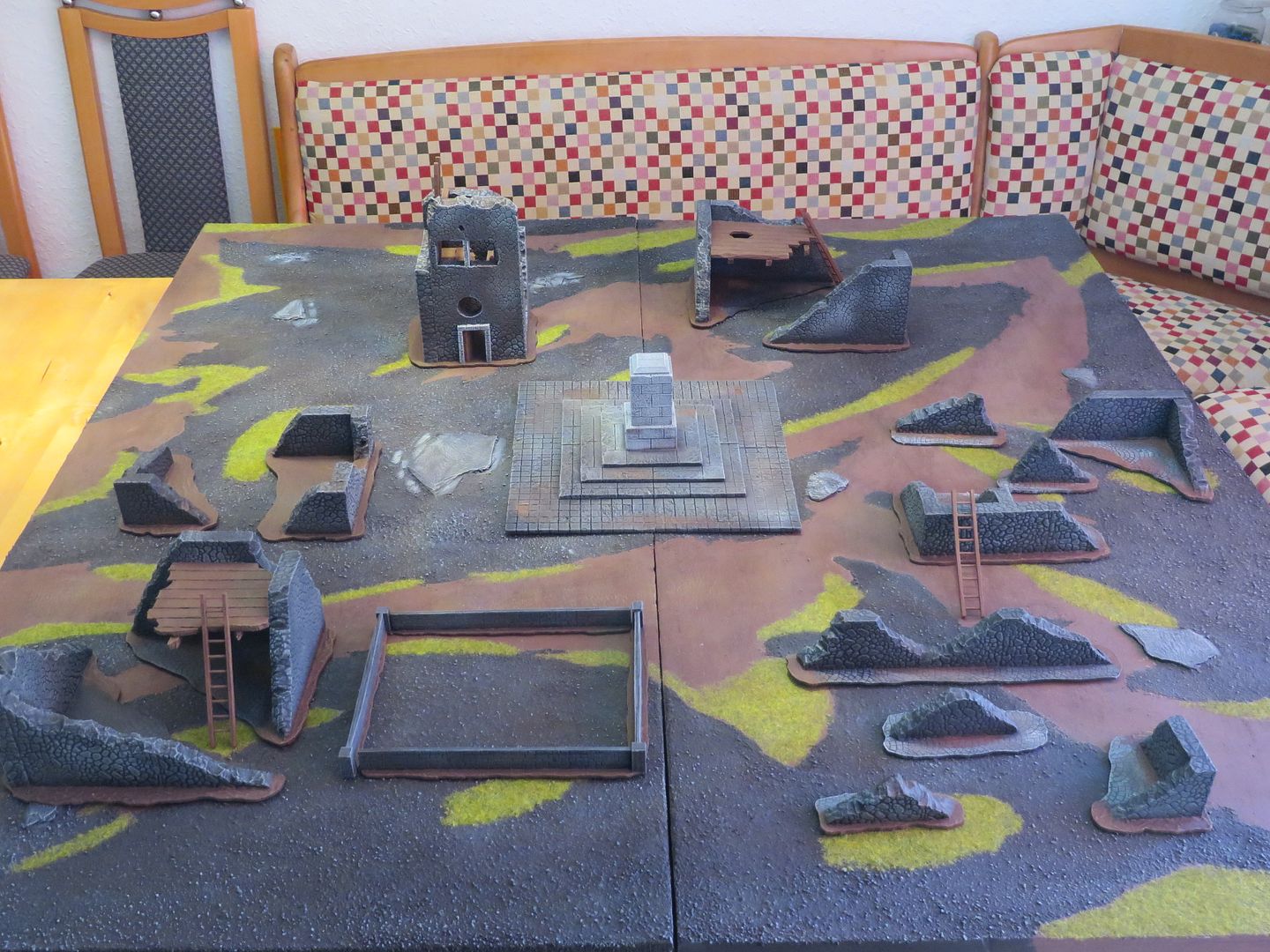 Frohe Ostern alle Zusammen. Wo wir heute mal wieder zum Frostgravespielen kommen und ich die Zeit hatte schon aufzubauen hier mal ein paar Bilder des Geländes was ich die letzten Wochen so gebaut habe und bemalt habe.